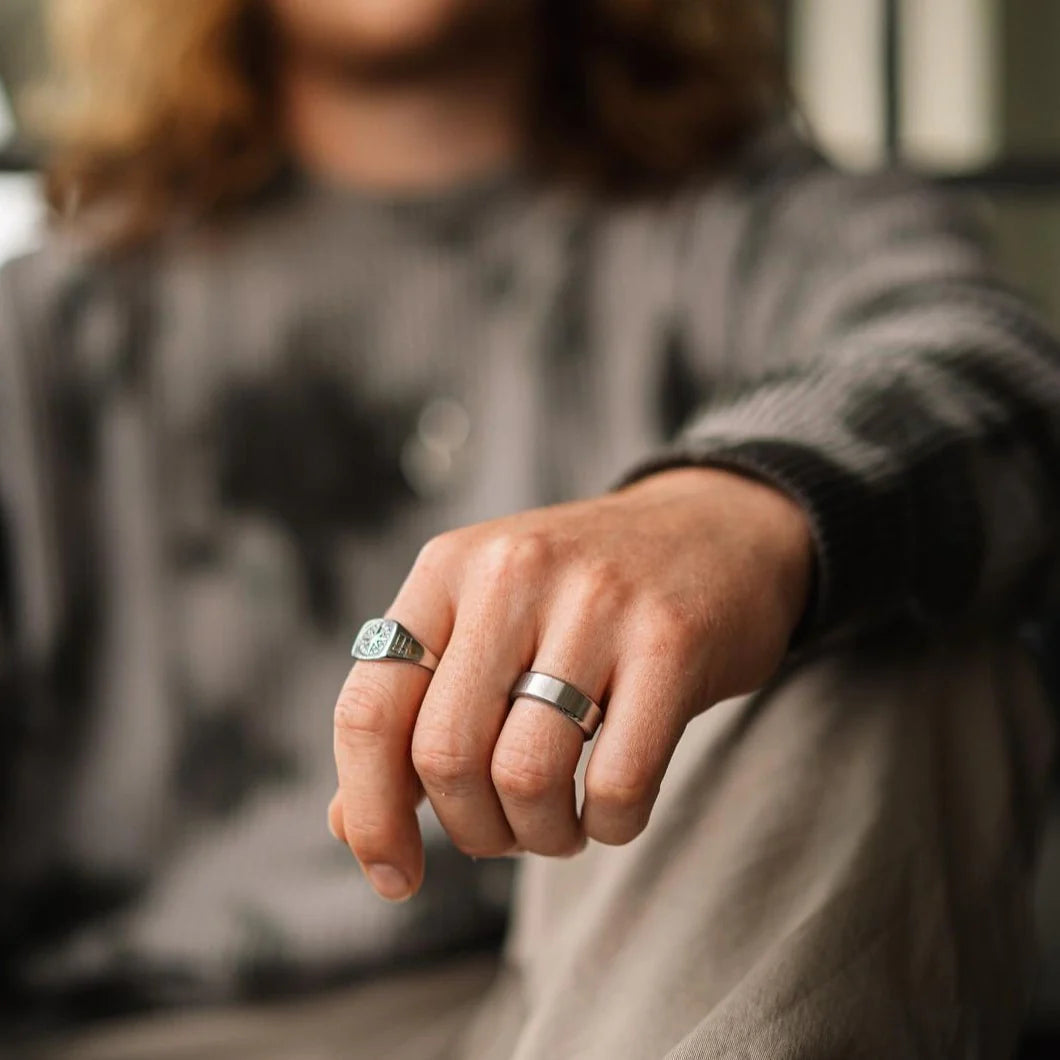 Our rings are crafted from high-quality materials like sterling silver, titanium, tungsten, and other durable metals. We ensure that each piece is made to last and is of the finest quality for long-term wear.