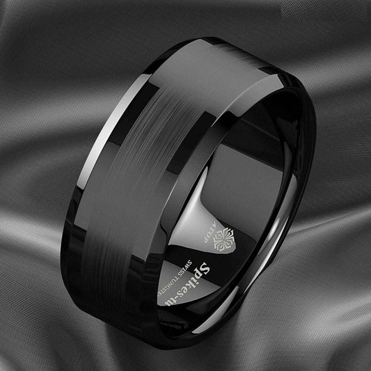 Black Brushed Band Tungsten Ring (8mm)
