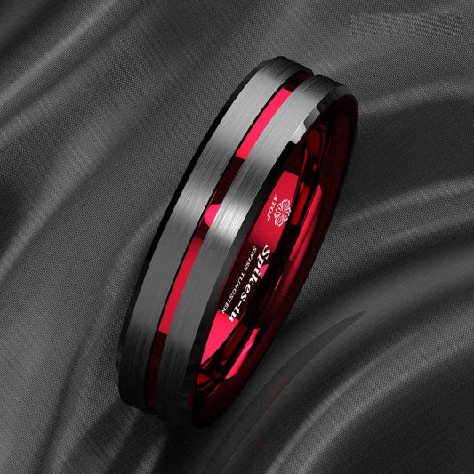 Black Thin Red Line Tungsten Ring 6mm