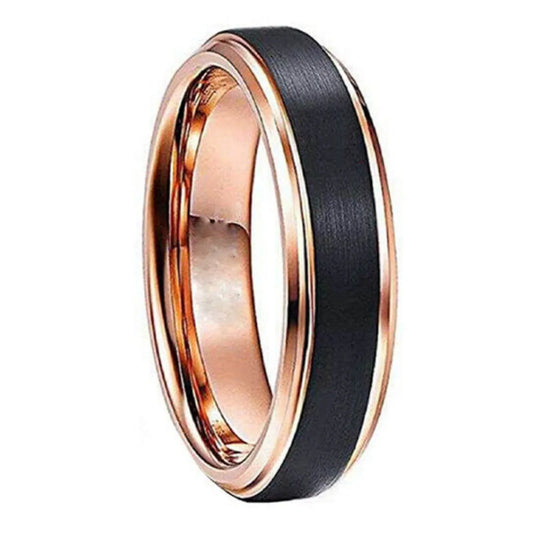 Black Tungsten Rose Gold Edges Ring 6mm