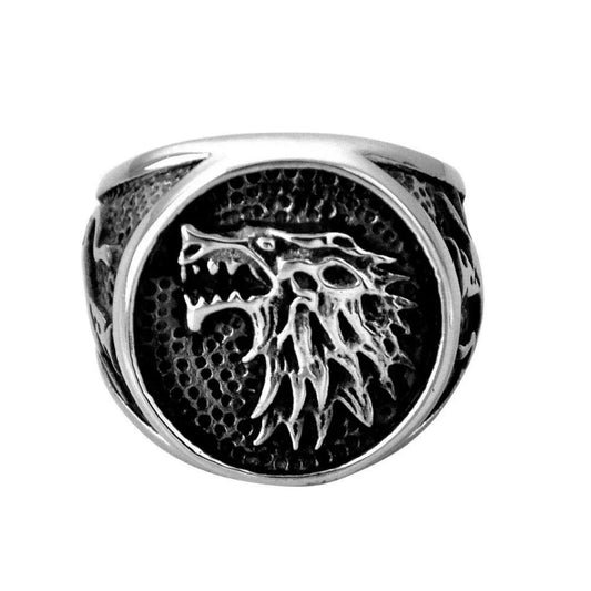 SAVE 54%Black Wolf Head Silver Titanium Ring