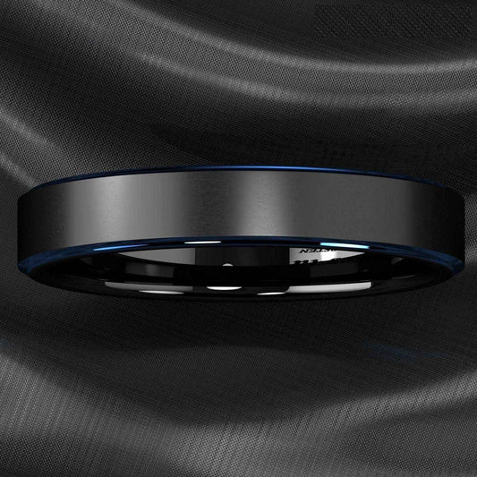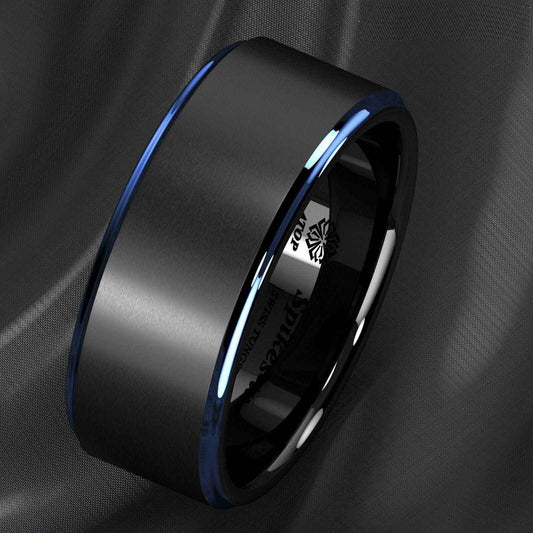 Blue Stripe Black Edge Tungsten Ring 8mm
