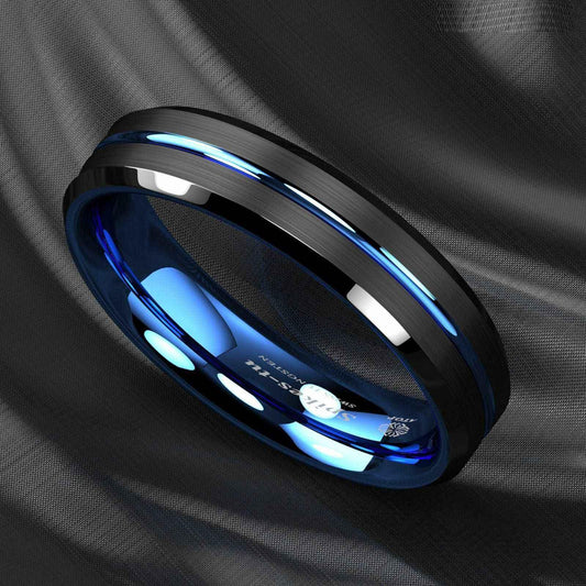 Buy Black Brushed Blue Stripe Tungsten Ring - 6mm