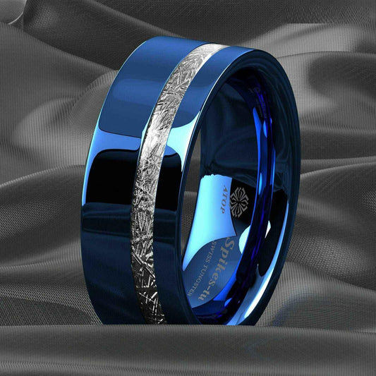 SAVE 57%Blue Silver Inlay Tungsten Ring 8mm