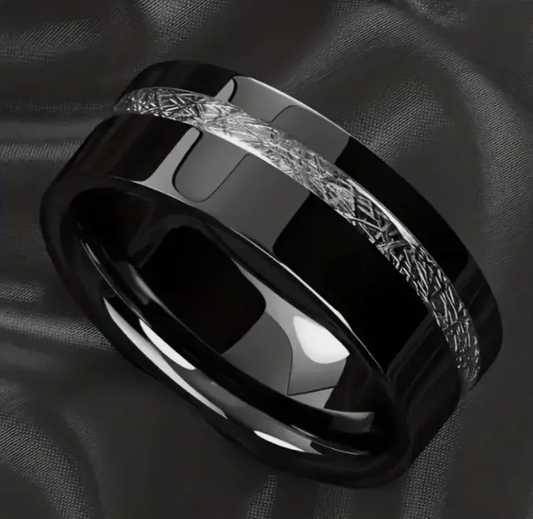 Unisex Nordic Silver Black Tungsten Ring 8mm
