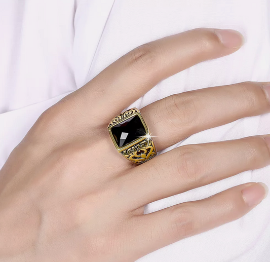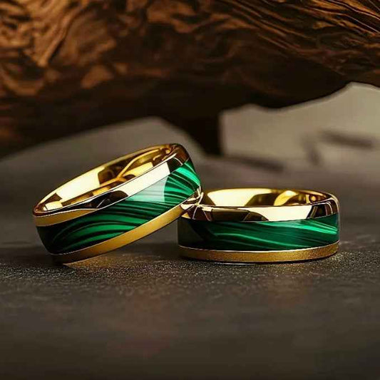 Mens Anniversary Wedding Dress Ring Gold Band with Marble Green