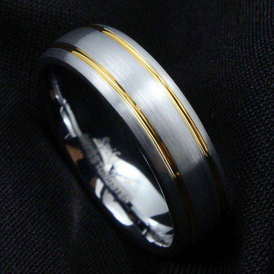 Silver Brushed 18k Gold Tungsten Ring (8mm)