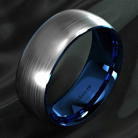 Sea Blue Brushed Center Tungsten Ring (8mm)