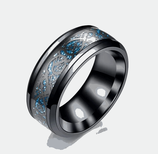 Buy Black Blue Celtic Dragon Tungsten Ring 8mm