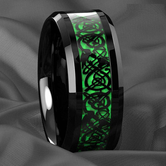 Buy Black Green Celtic Dragon Tungsten Ring - 8mm