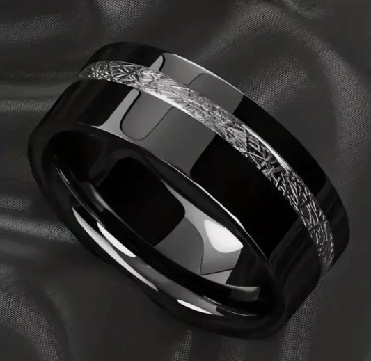 Black and Silver Stripe Titanium Ring Band for Men 8mm