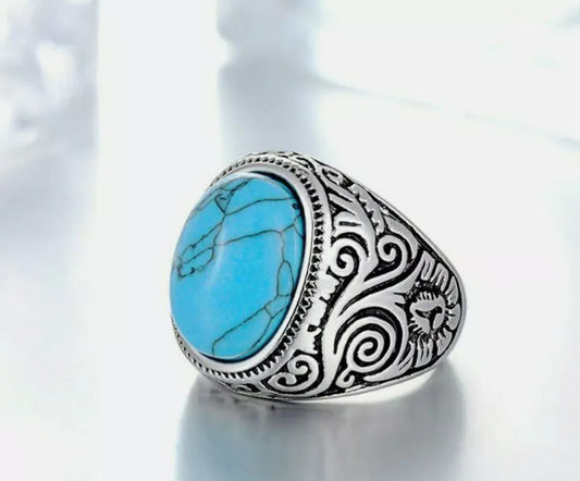 Blue Turquoise Stone Men Titanium Ring