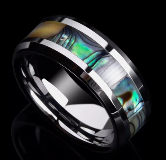 8mm Green Shell Pattern Titanium Men’s Ring