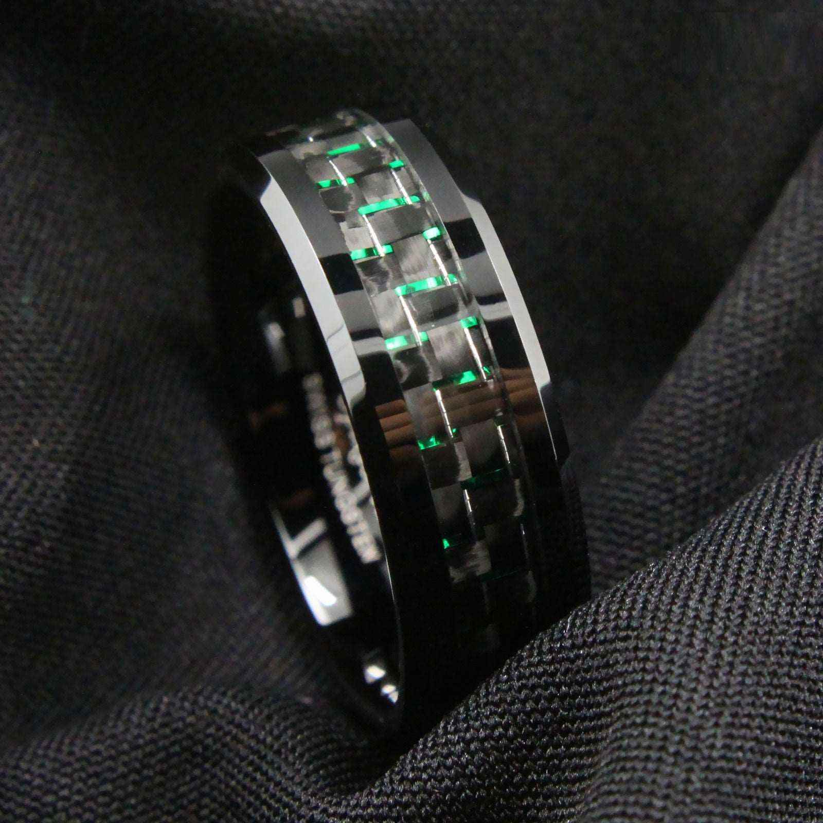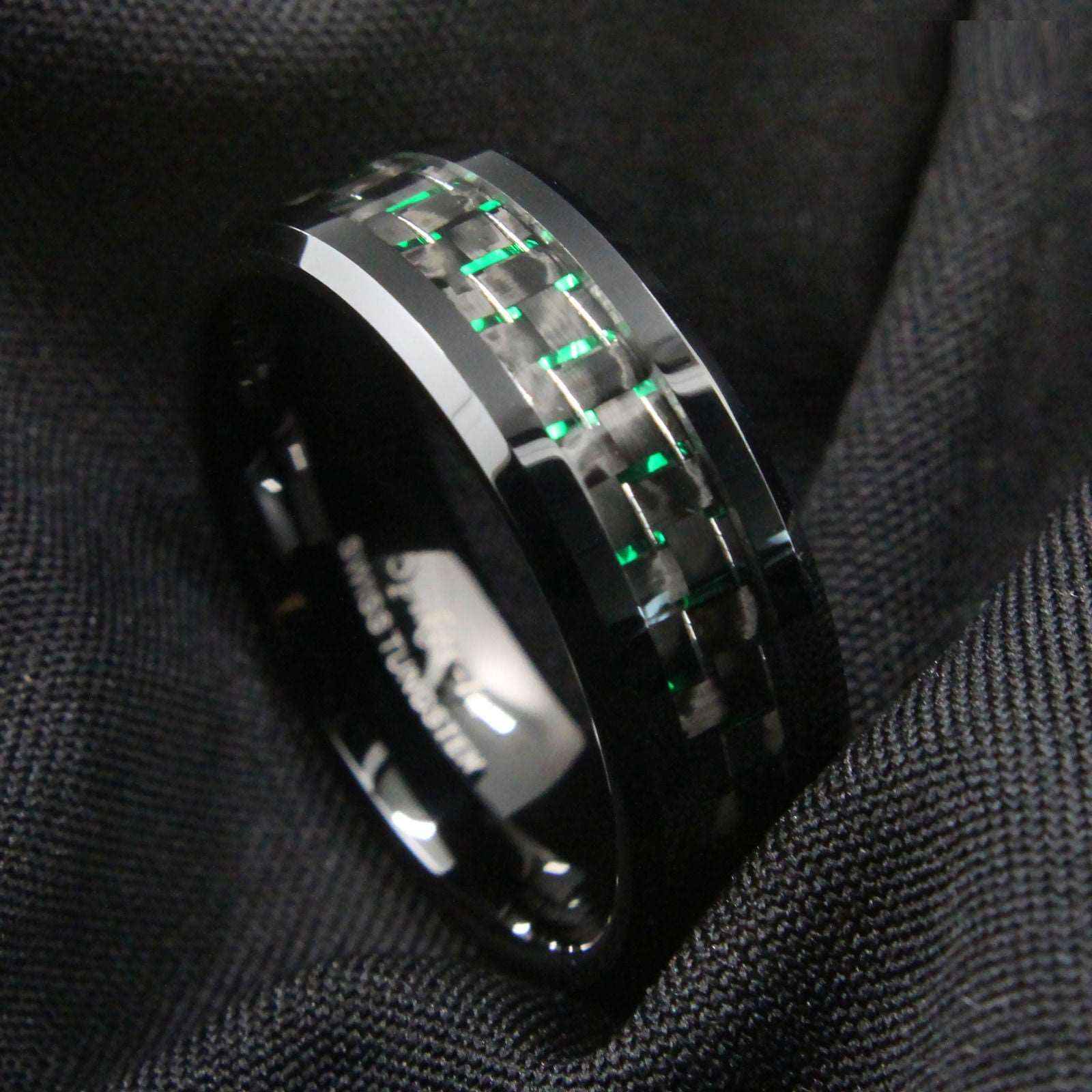 Buy Black and Green Fibre Tungsten Ring - 8mm