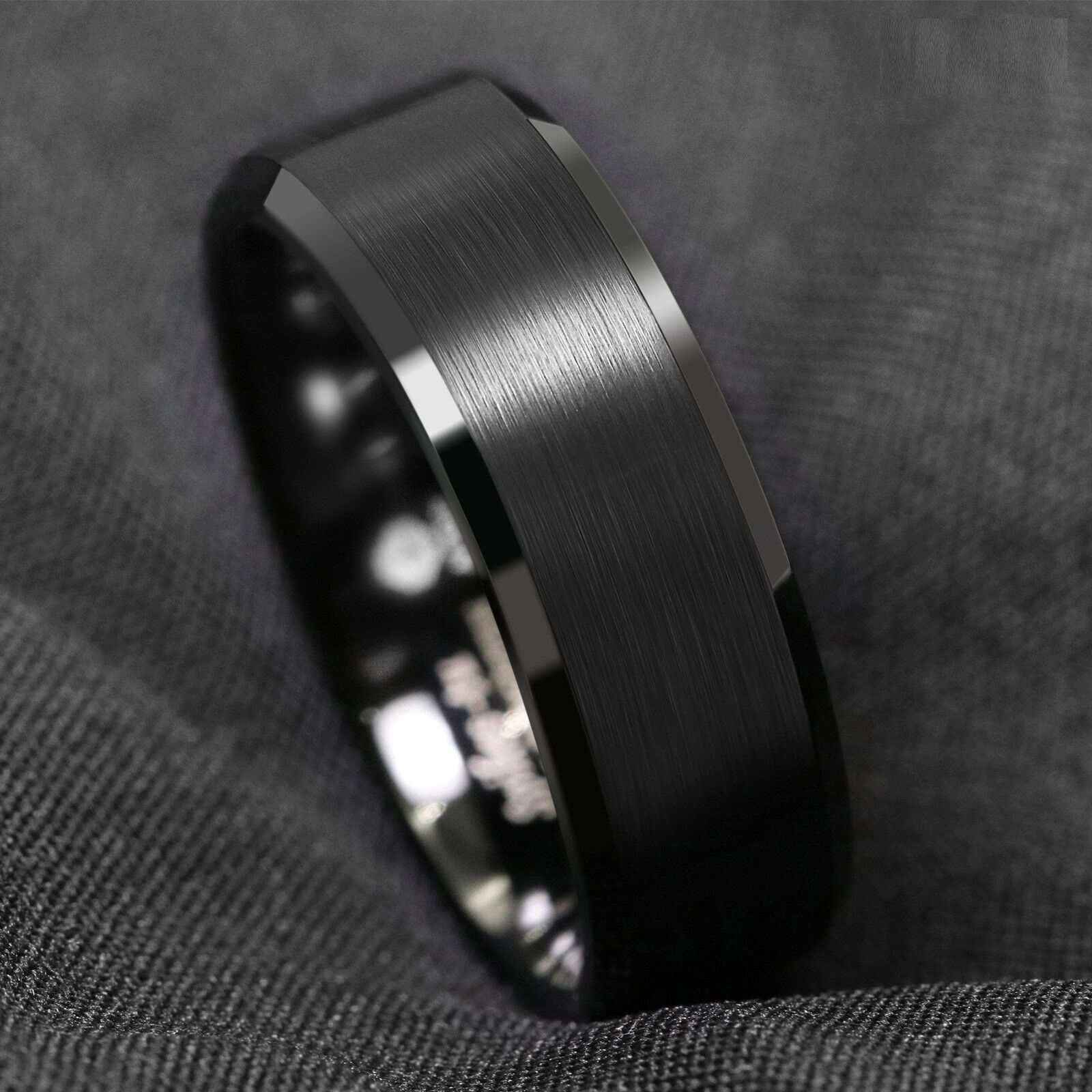 The brushed black finish offers a sleek matte texture, separating it from polished rings. Made from premium tungsten carbide, it is scratch-resistant, strong, and built to last.