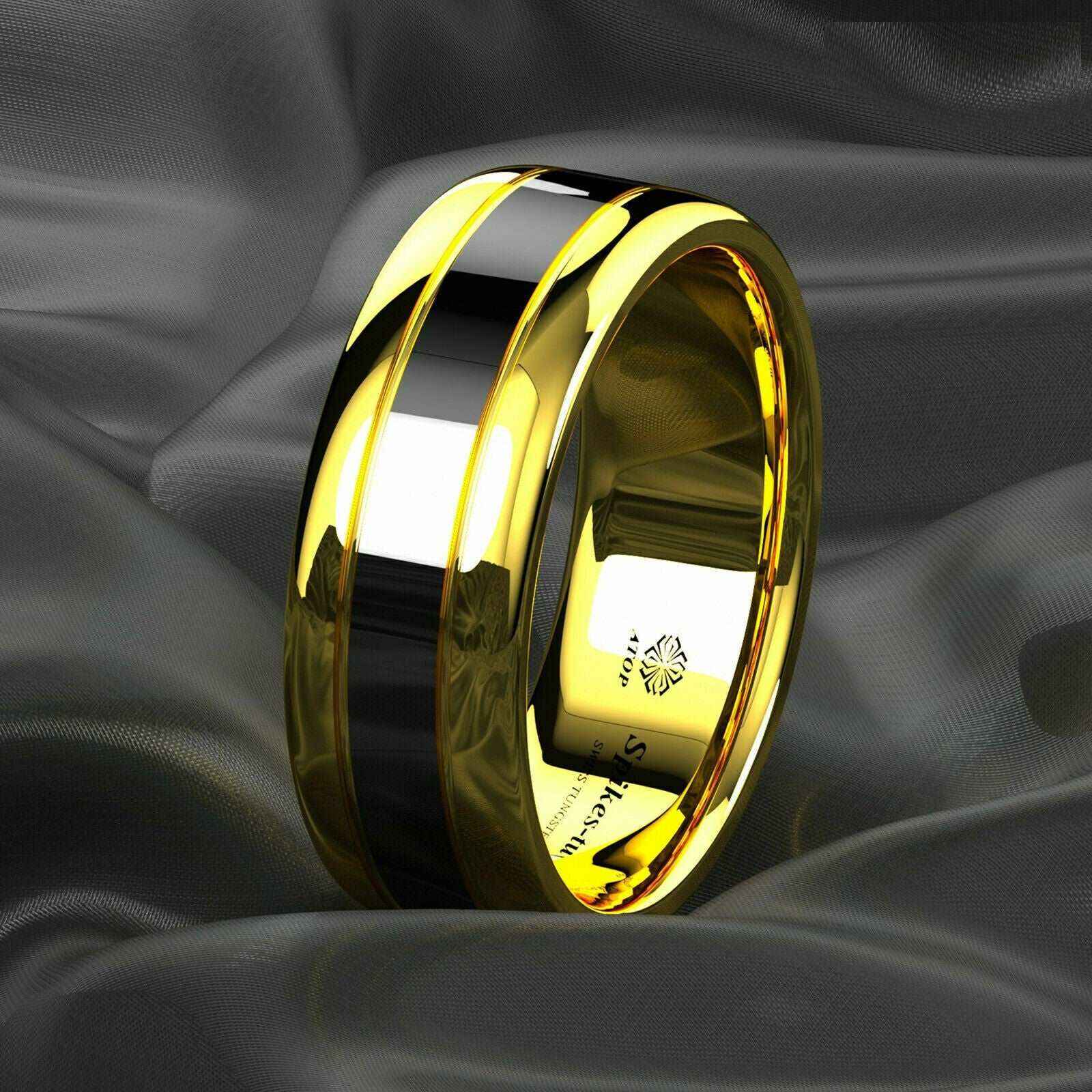 18k Gold Black Tungsten Ring 8mm – Durable & Stylish