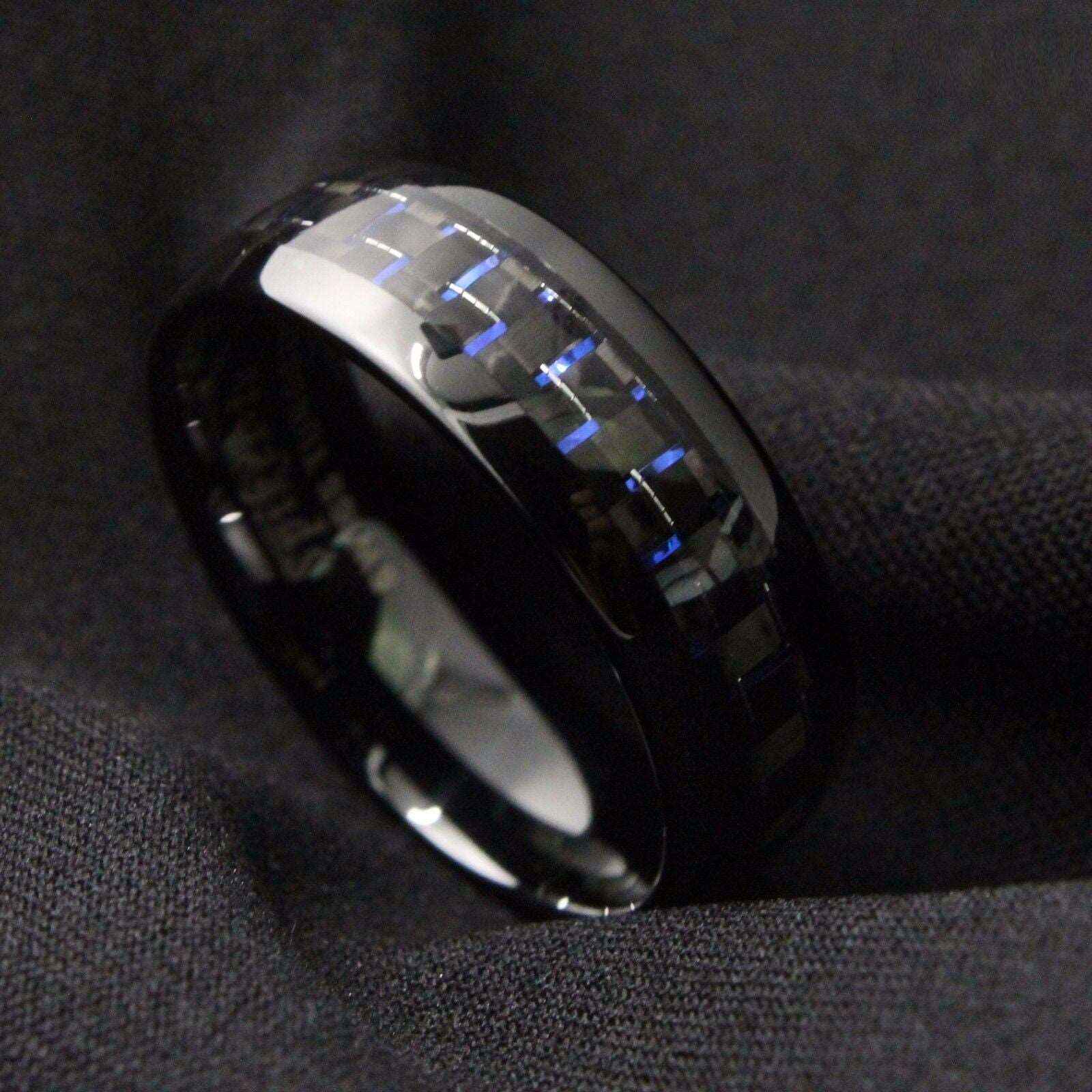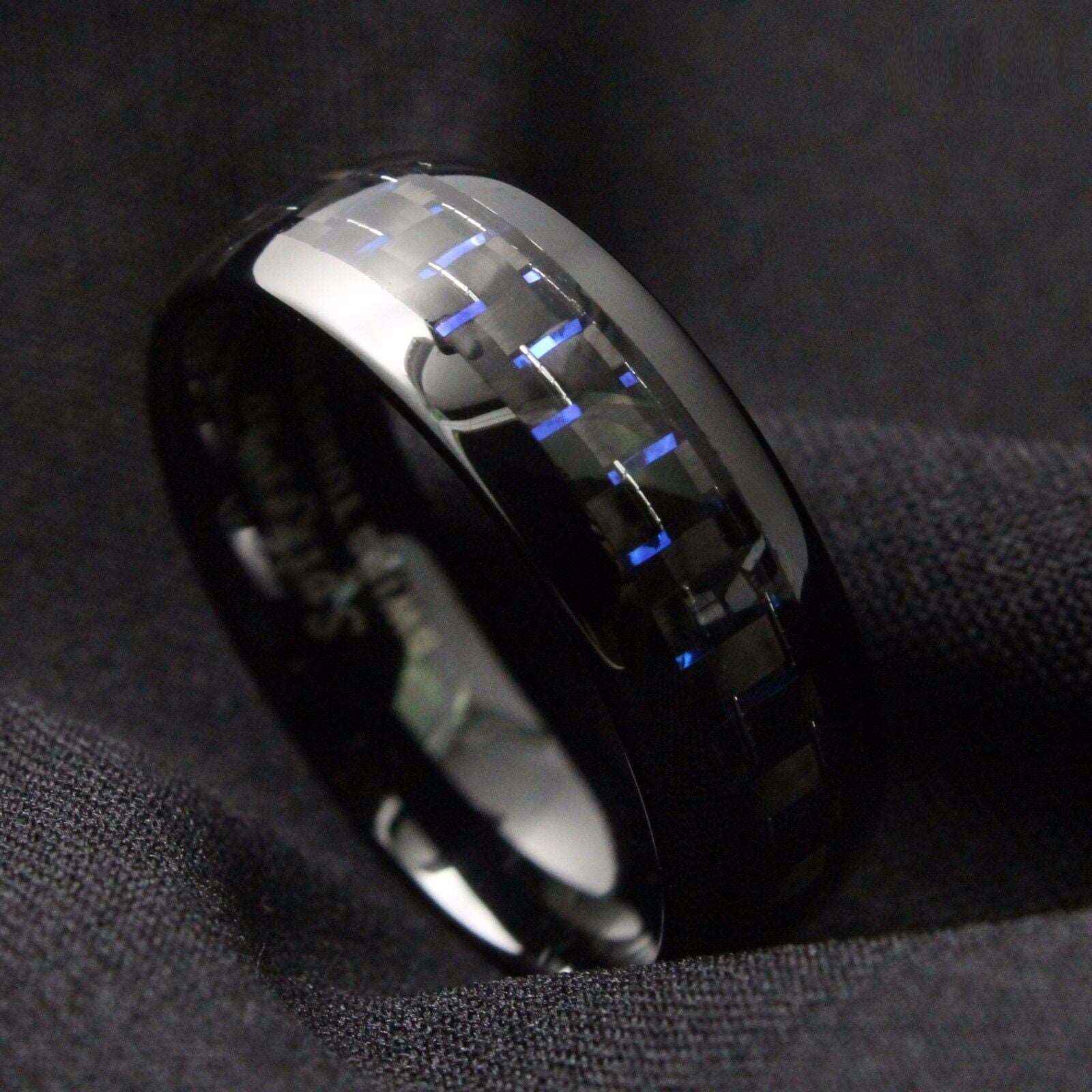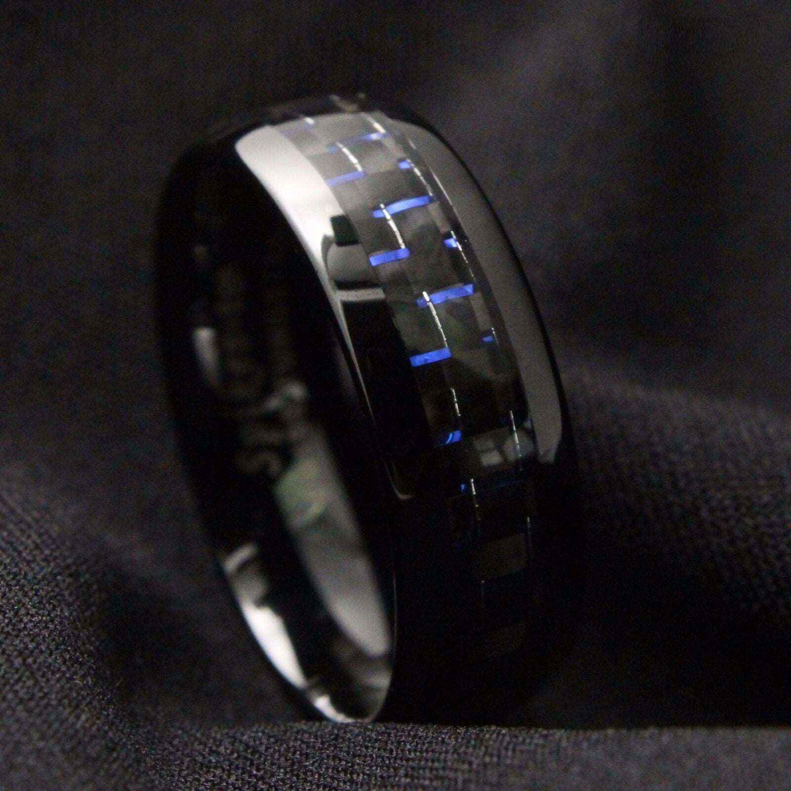 Buy Black Blue Carbon Tungsten Ring 8mm