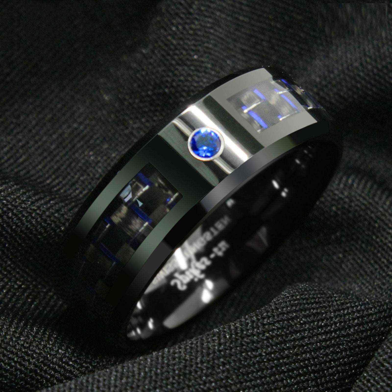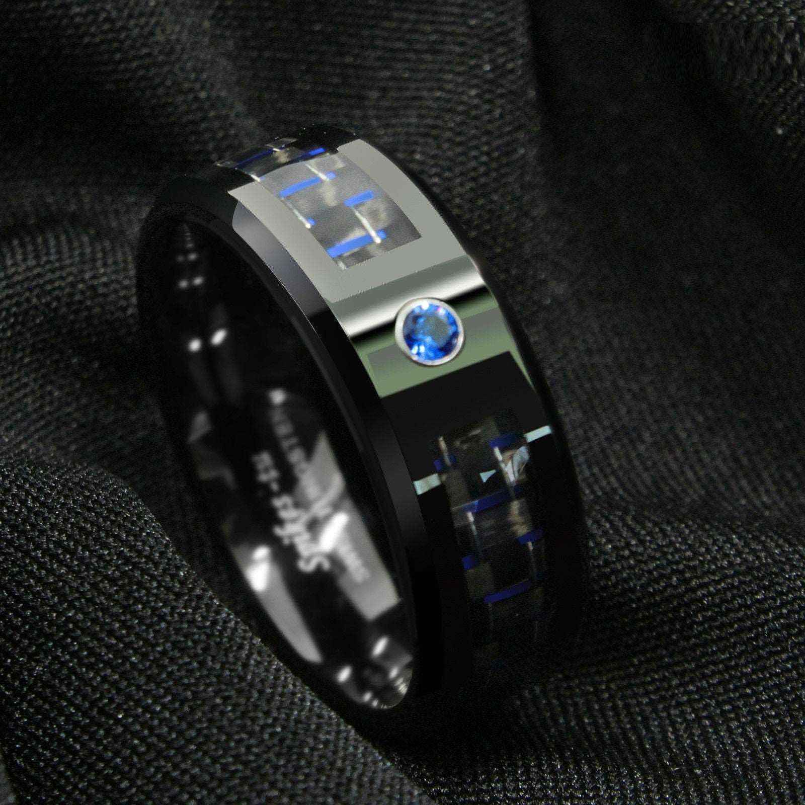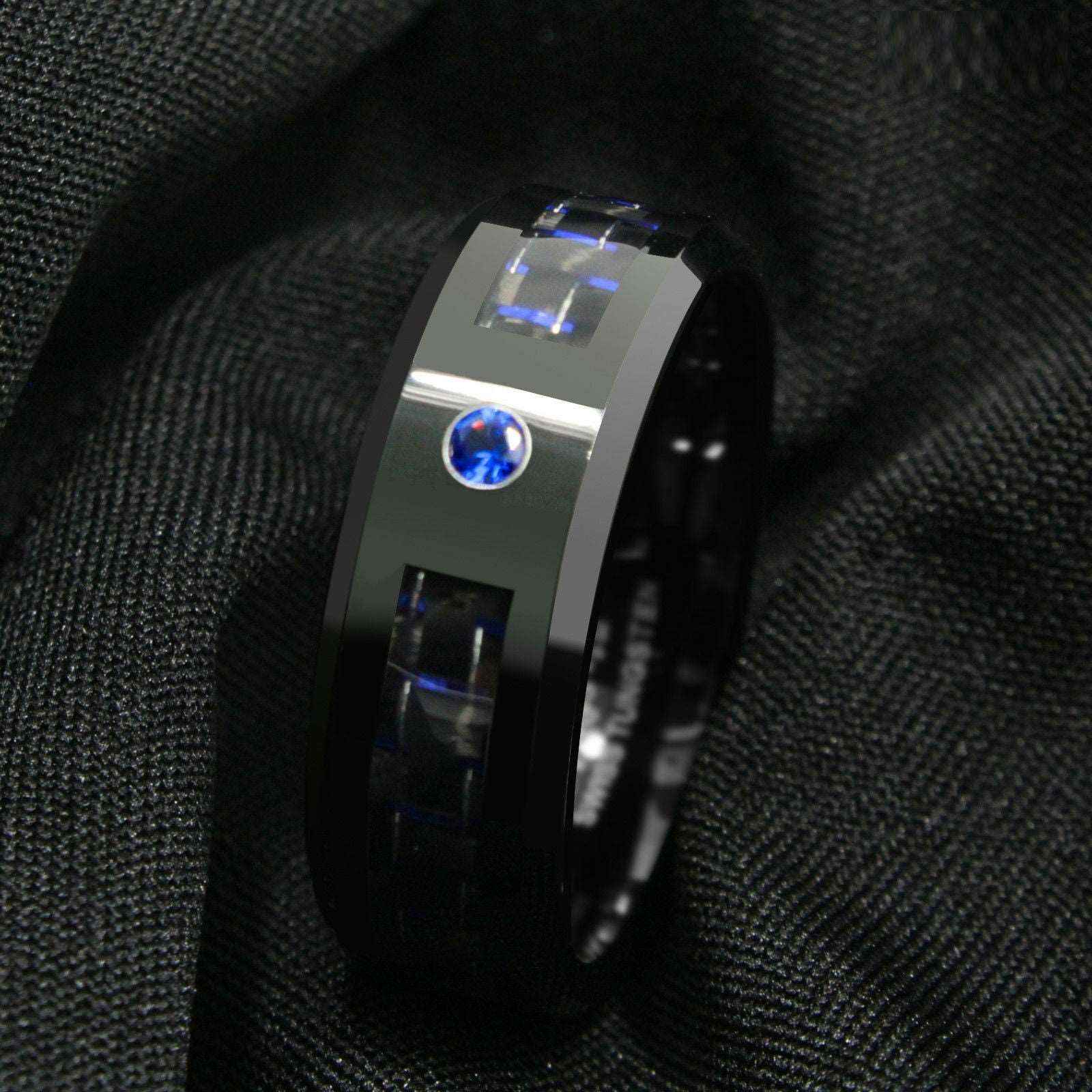 The Black Blue Diamonds Tungsten Ring combines sleek black tungsten with vibrant blue accents and sparkling diamonds. Crafted for durability, it features a modern matte finish and genuine diamonds for a luxurious touch.