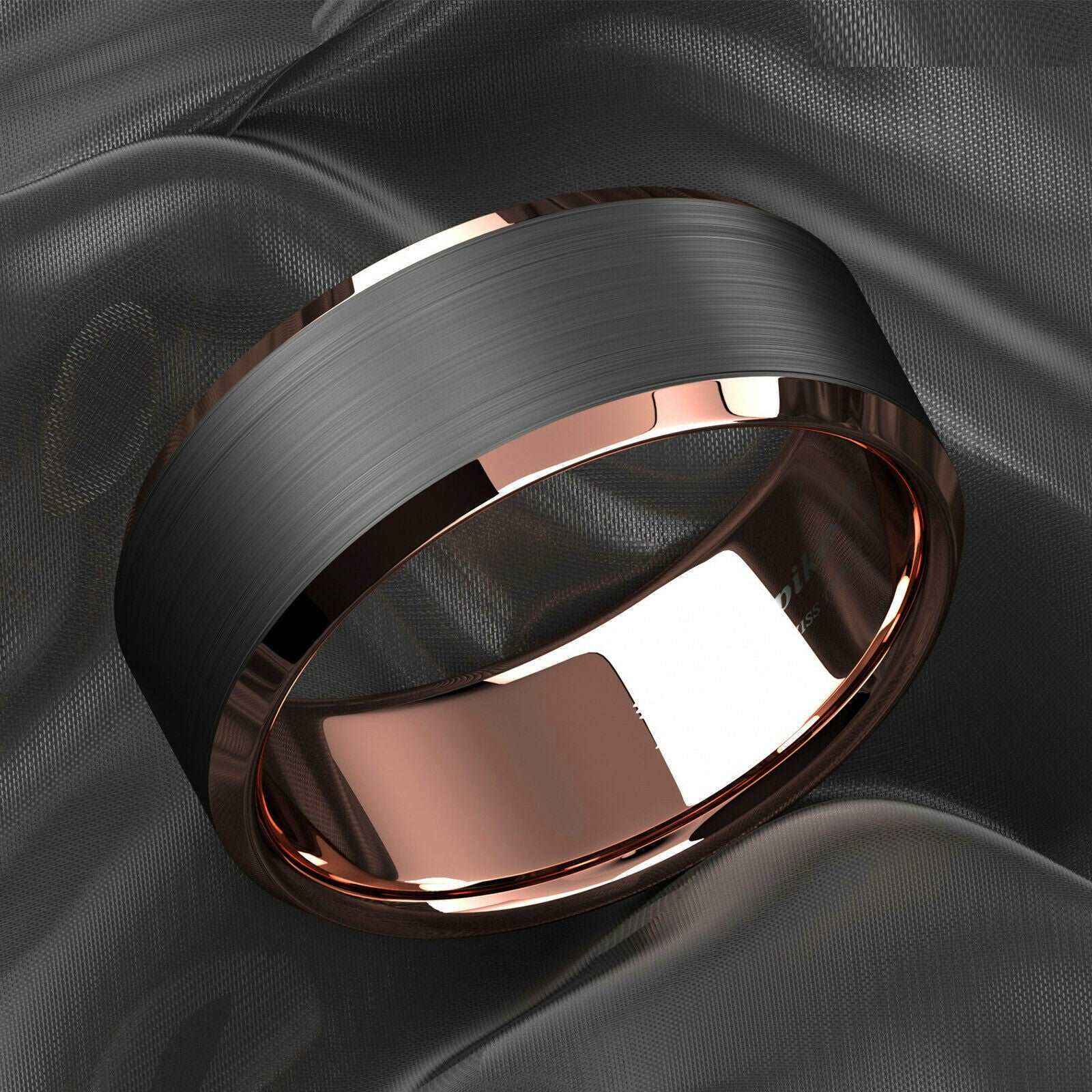 Buy Black Rose Gold Edge Tungsten Ring - 8mm