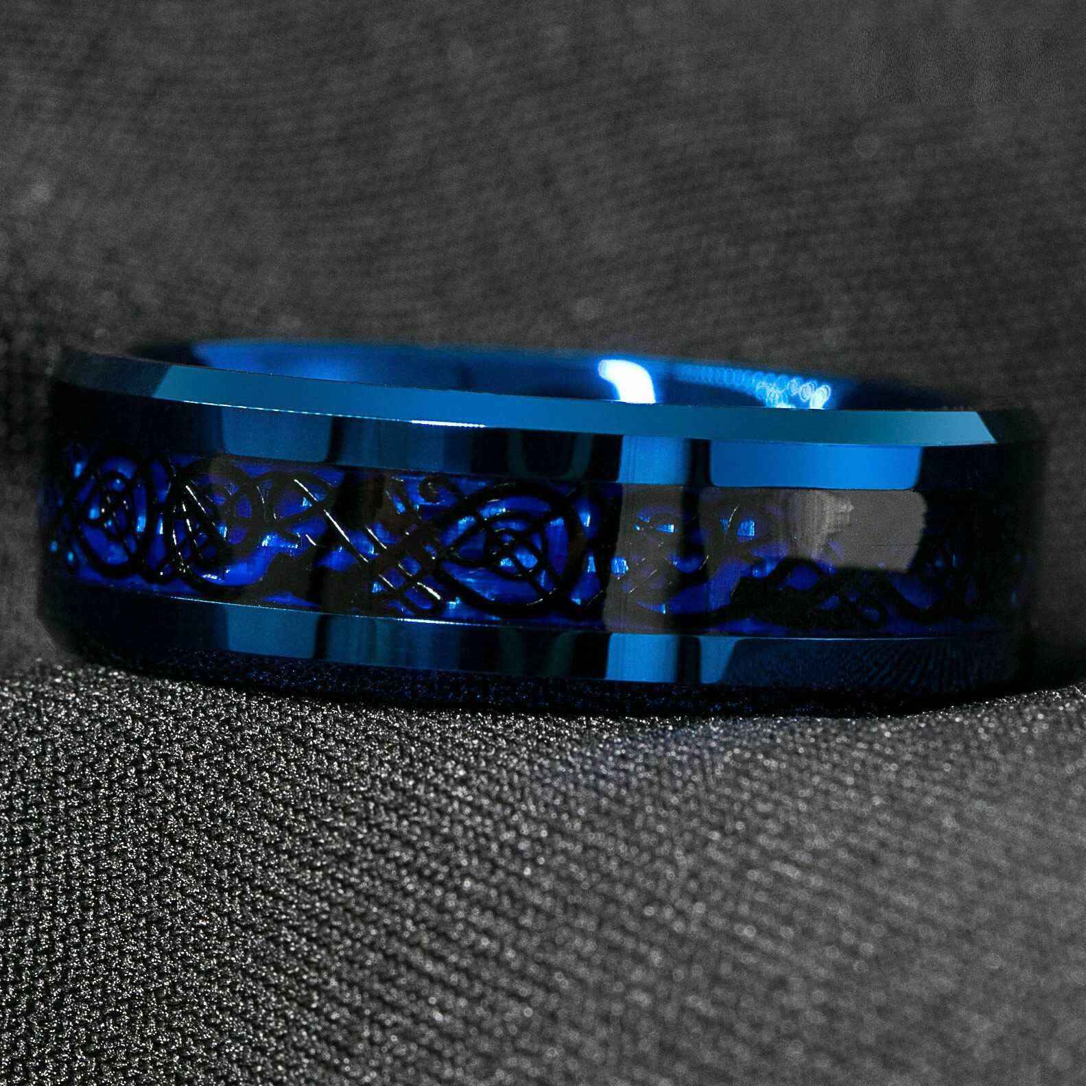 Blue Black Celtic Dragon Tungsten Ring (8mm)