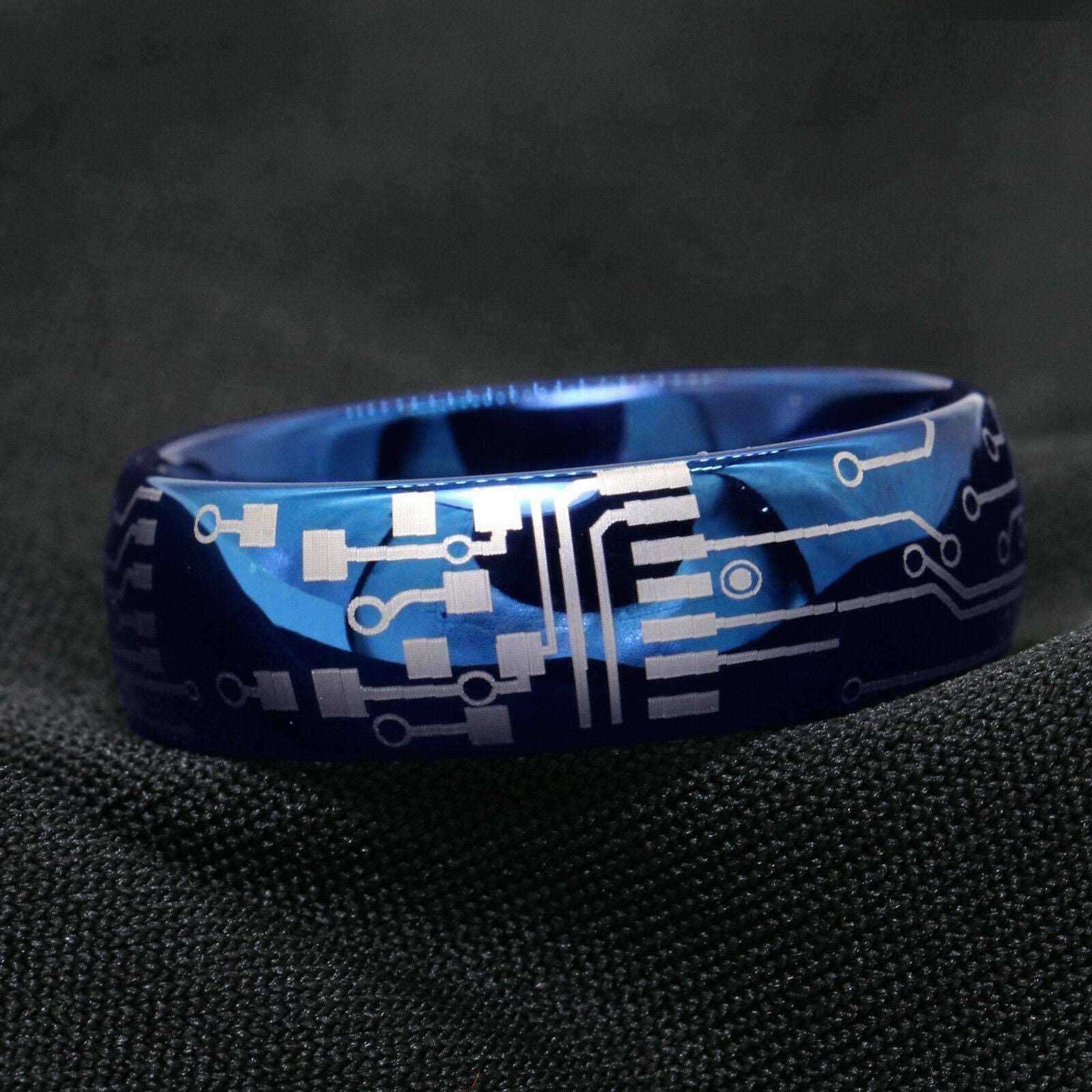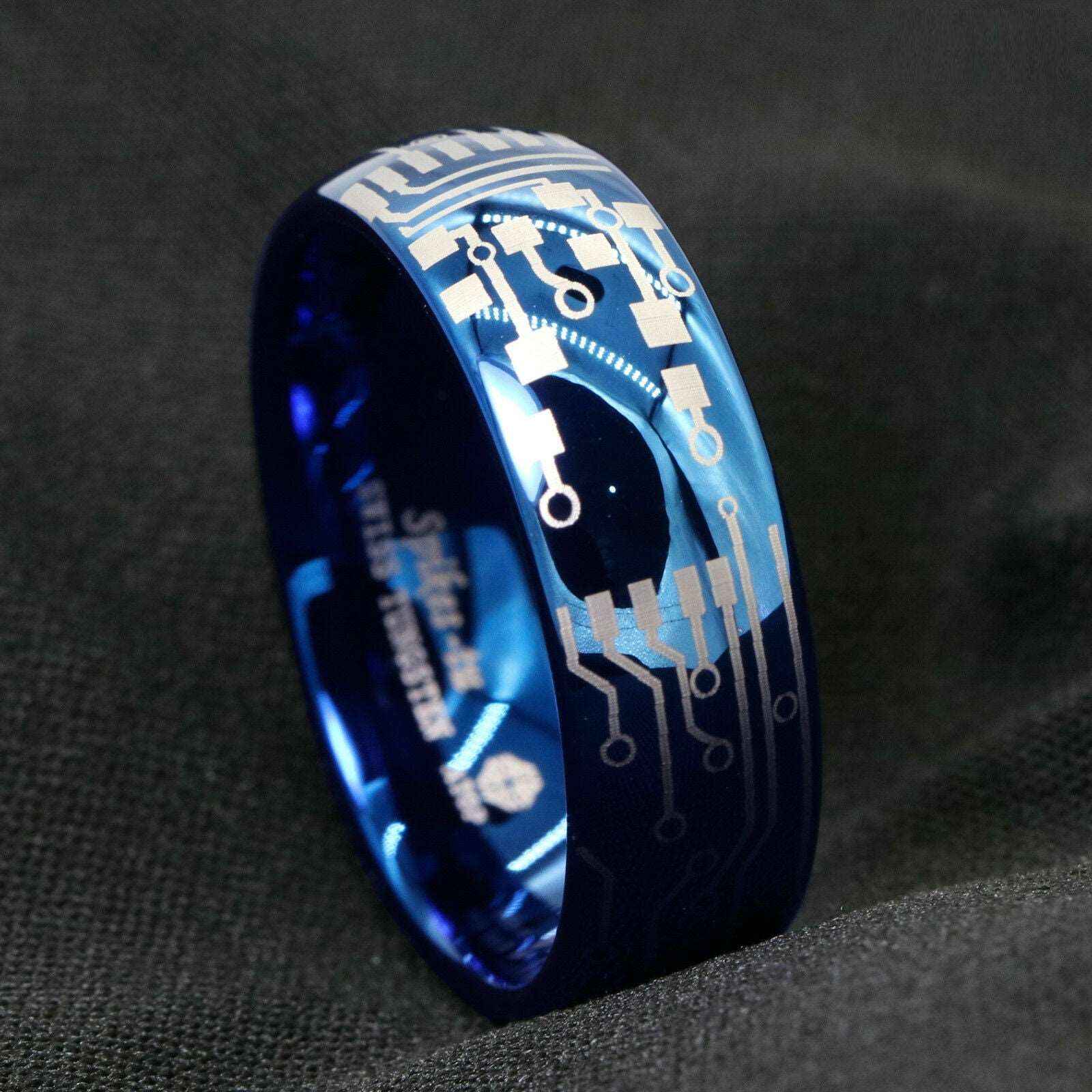 Blue Tungsten Circuit Board Ring - An Amazing Combination of Style and Innovation