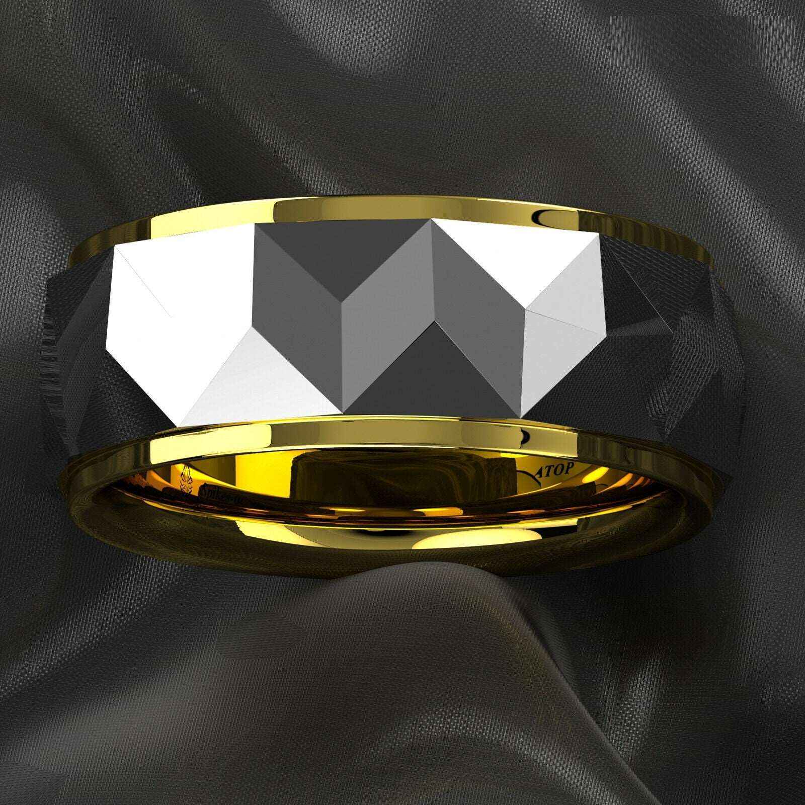 Silver Rhombus Tungsten 18k Gold Rings Mens (8mm)